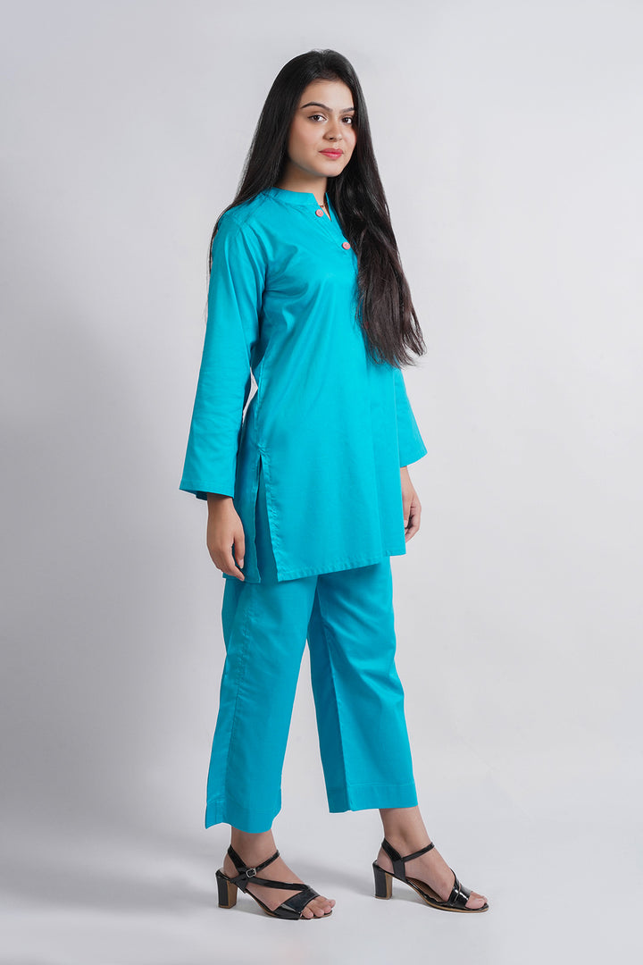Introducing Aquaelle, a refreshing addition to our new collection. This 2-piece solid co-ord set in a stunning sea green hue embodies tranquility and effortless grace. Inspired by the calm depths of the ocean, Aquaelle brings a perfect blend of sophistication and serenity to your wardrobe.