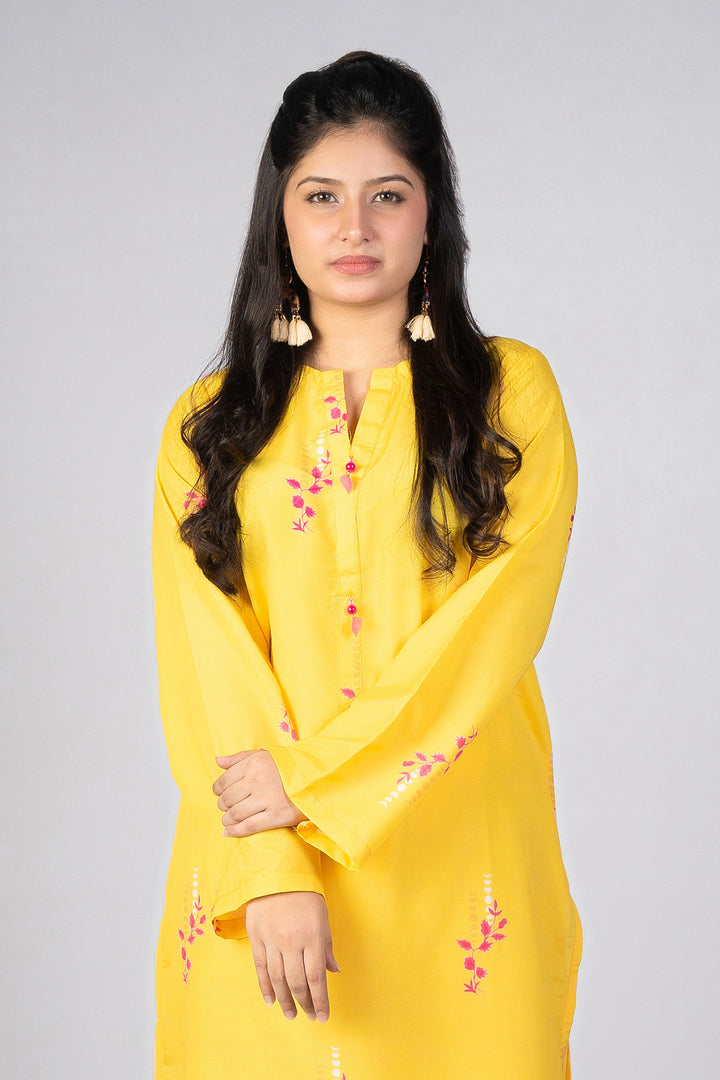 Aurina – Featuring a cheerful yellow base adorned with delicate pink floral prints, Aurina brings a vibrant yet graceful charm to your wardrobe. This co-ord set blends timeless femininity with everyday ease, perfect for the woman who adores subtle colors and effortless style. 🌸✨