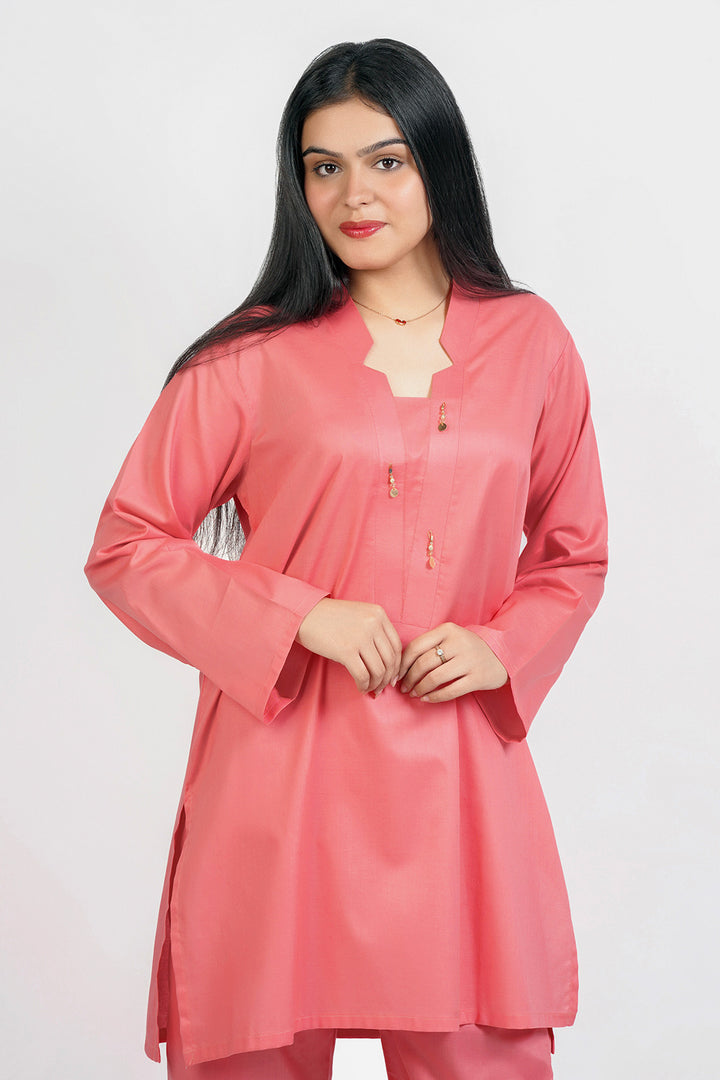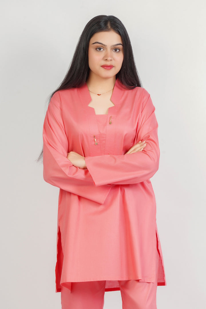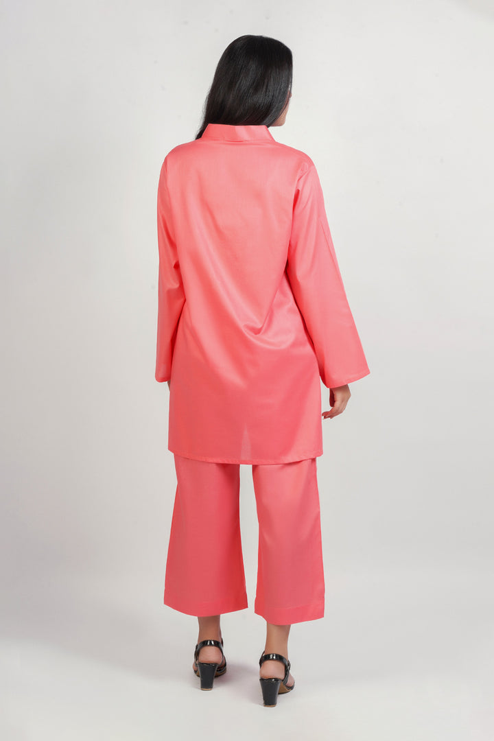 Introducing Roselle, a charming addition to our new collection. This 2-piece solid co-ord set in a delicate yet vibrant pink hue embodies femininity, elegance, and confidence.